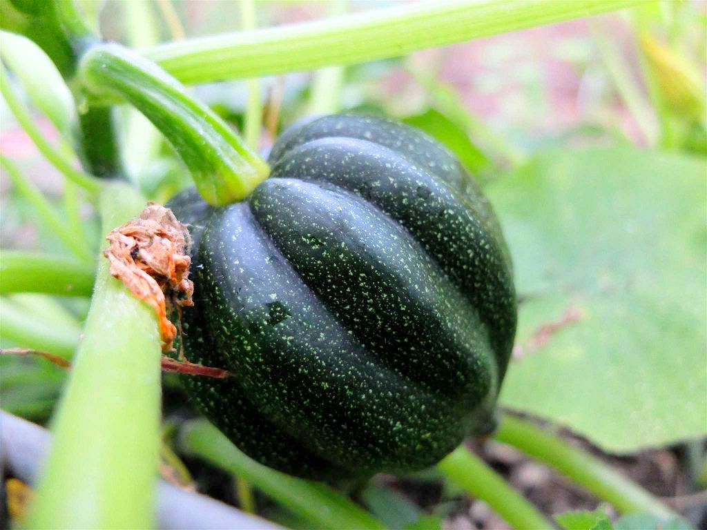 Acorn squash, which has a pretty yellow blossom (also edible), popped up in a perennial bed after it was fertilized with home-grown compost in Molly Glentzer’s yard.