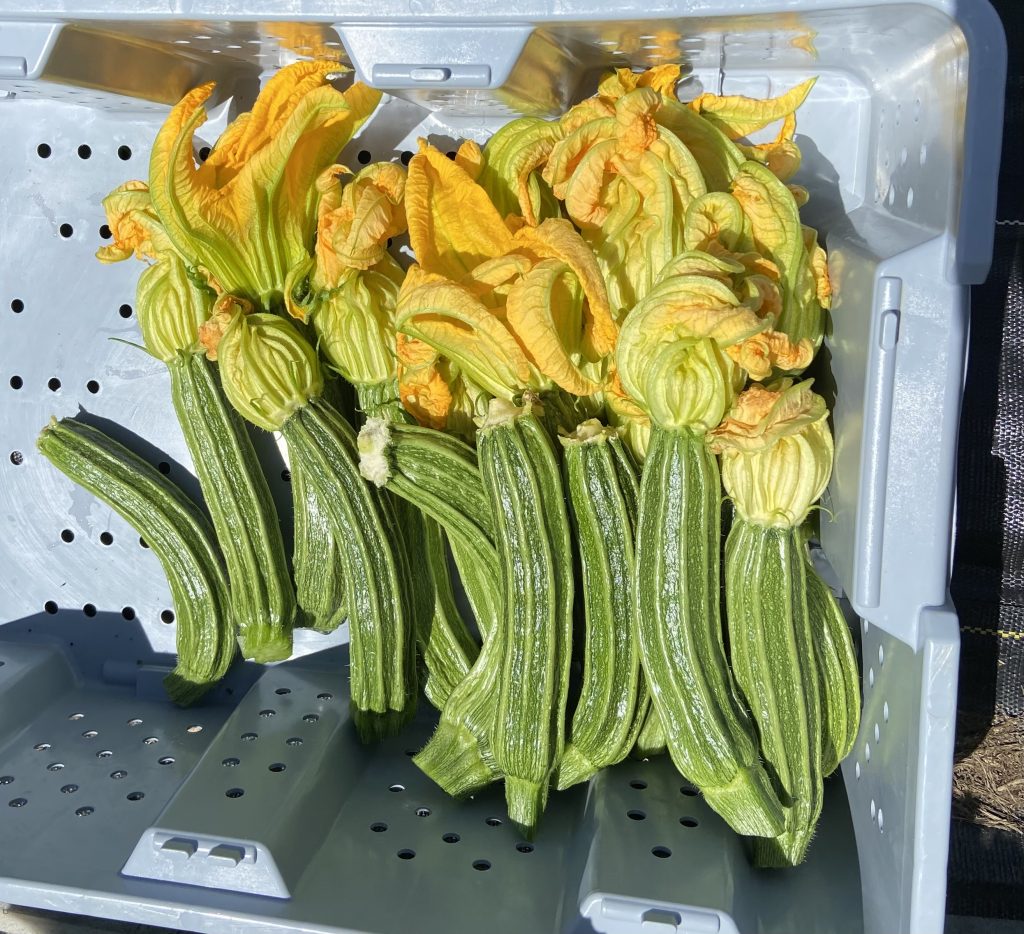 FULL TABLE This week Full Table Farm will be back with more early summer goodness! **New** this week they’ll have new potatoes! They’ll also have butterhead lettuce, spring lettuce mix, and power greens salad mix along with scallions, basil, salad turnips, radishes, carrots, and beets. Broccoli, sprouting broccoli (aka broccolini), cauliflower, kale, and chard will also be available. The sugar snap peas are beginning to wind down in the heat, but there will still be delicious pints left for this week. It’s also now officially zucchini season on the farm! They have both the usual dark green skinned zucchini and a lighter green stripped zucchini called Costata Romanesco. This pretty variety is a traditional Italian heirloom with a firmer texture and a slightly nutty flavor – it’s delicious raw or cooked! |