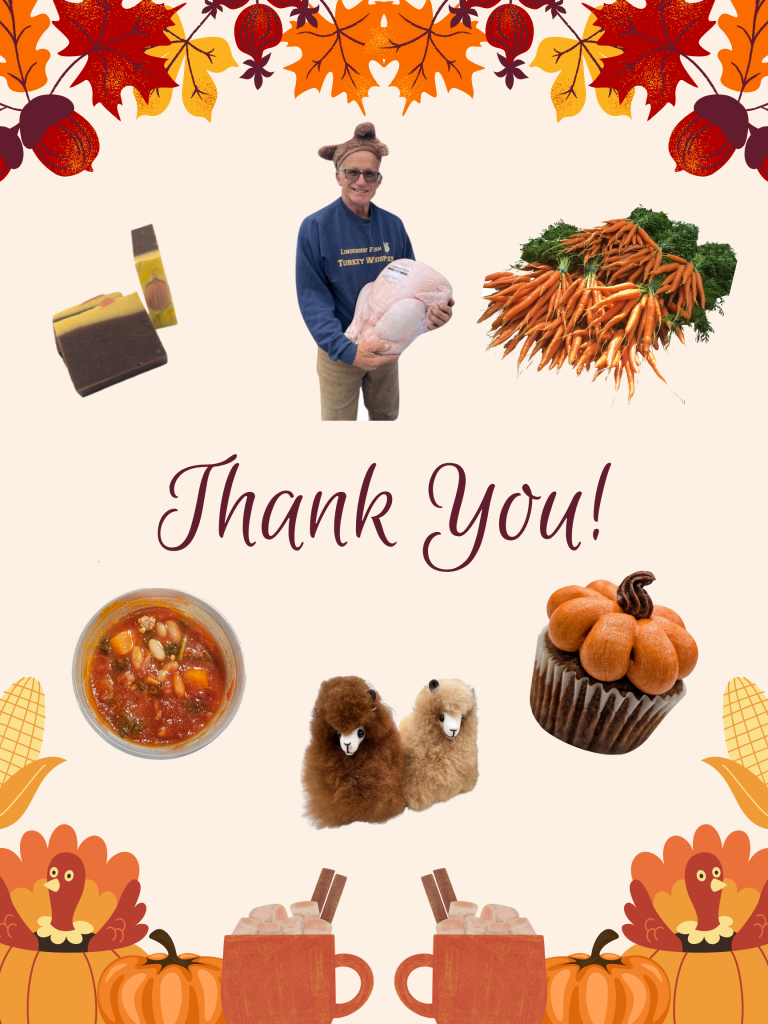 | LINDENHOF FARM Lindenhof Farm is a family-run, multi-generational farm nestled in the heart of Kirkwood, PA, owned by Axel and Susan Linde. They take pride in raising all-natural, grass-fed poultry, beef, lamb, and hogs on lush, open pastures. They will have plenty of fresh turkeys for everyone in all sizes, with plenty of helpers to keep the line moving. Turkey preorders are closed, but they will bring plenty of eggs, beef roasts and steaks, pork chops and sausages, and whole chickens and parts. You can place your preorder here. |