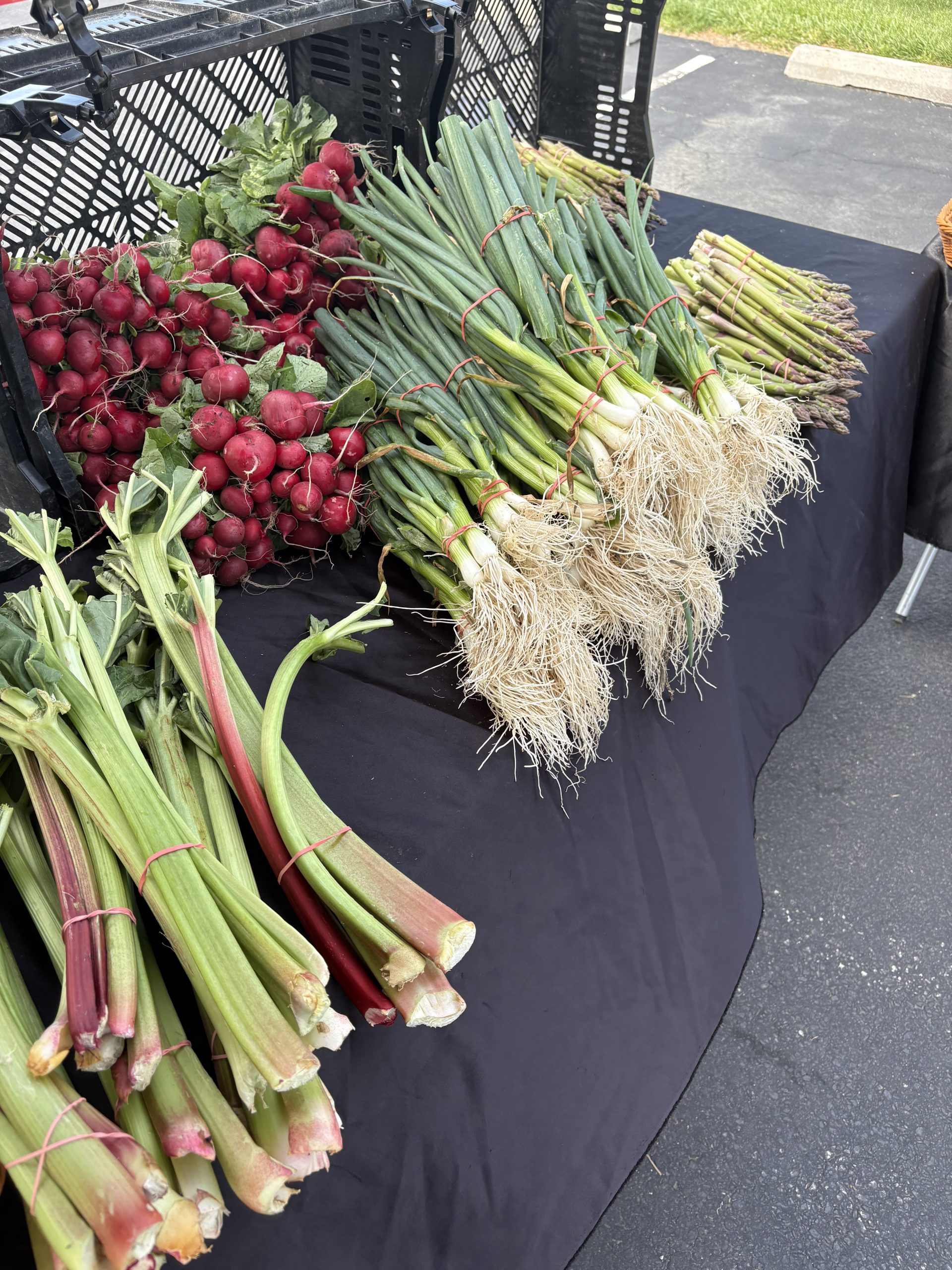 | RED BARN PRODUCE Red Barn Produce will return to the market this week with their locally grown produce. This week, they will have head lettuce, spring mix, power mix, kale, arugula, asparagus, spinach, potatoes, sweet potatoes, onions, garlic, carrots, spaghetti and butternut squash, Honey Crisp and Gala apples, rhubarb, fresh-cut flowers, corn-, soy-, and GMO-free eggs, and whatever else is ready. |